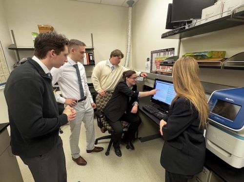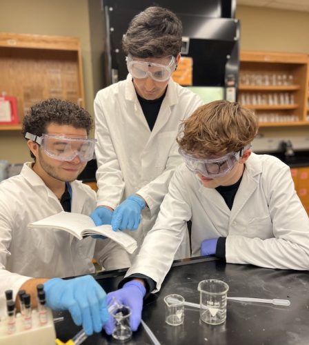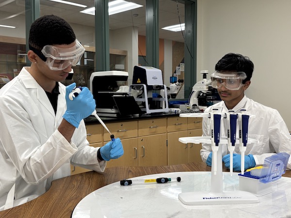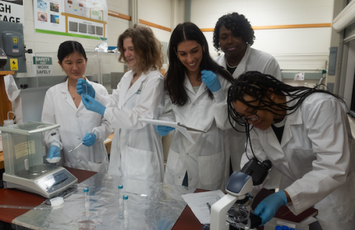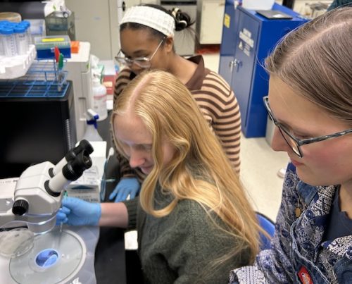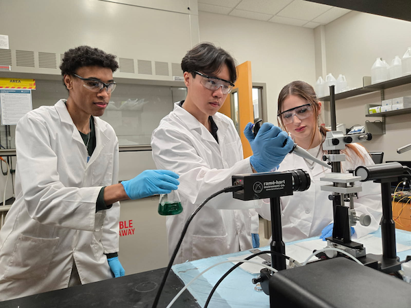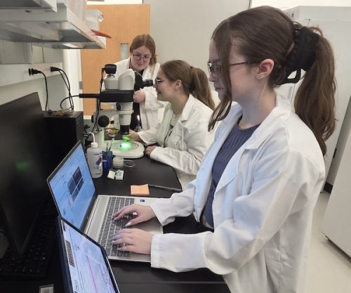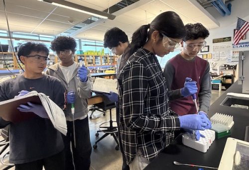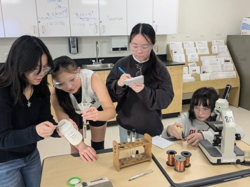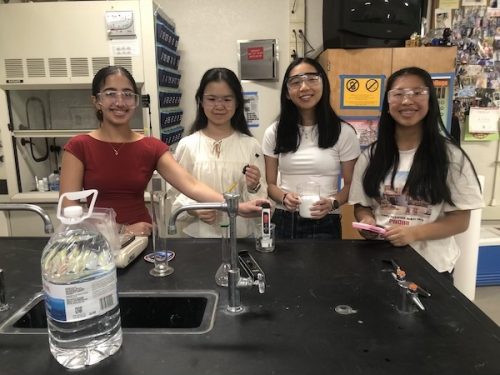 Student Researchers Joella Huang, London Canterbury, Olivia Yu-Zhu and Julia Brown (L to R) conducting experiment optimization trials.