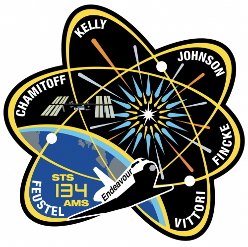 The official Mission Patch for STS-134, the last flight of the Endeavour Space Shuttle. It is important to note that Endeavour carried the SSEP 1 Eagle payload of experiments. The STS-134 patch represents the space shuttle Endeavour and its mission to resupply the International Space Station. The space shuttle Endeavour and ISS fly together into the sunrise over the limb of the Earth, representing the dawn of a new age understanding the nature of the universe.